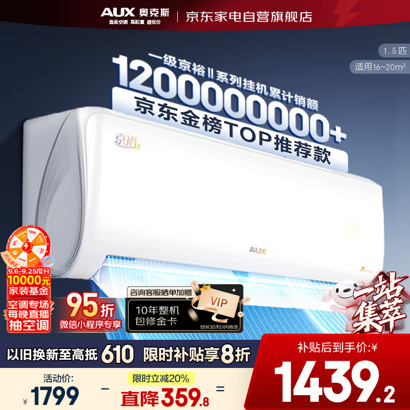 ¥1 奥克斯(AUX)空调大1.5匹一级能效 京裕II 省电挂机卧室防直吹政府补贴KFR-35GW/BpR3AQE1(B1)倾静省电侠同款 ¥1799 京东月销量72好评率99%无理由退换京东配送 购买