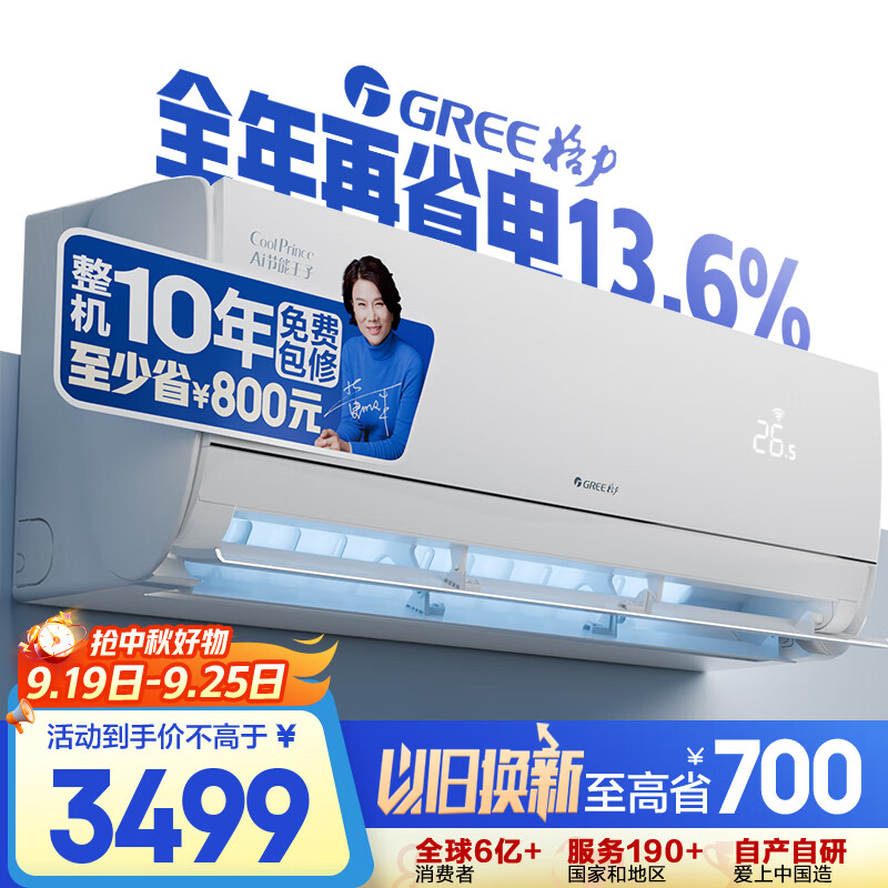 六、格力空调 1.5匹Ai节能王子 新1级变频自清洁壁挂式卧室挂机 省电空调