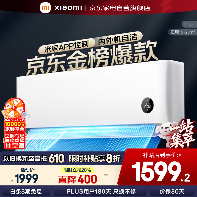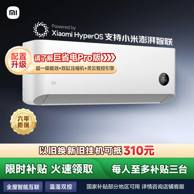 【京东自营】小米米家1.5匹新一级能效巨省电变频冷暖壁挂式空调挂机KFR-35GW/N1A1【国家补