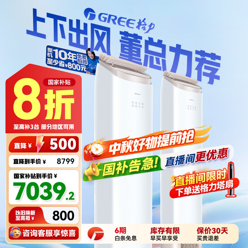 格力(GREE)空调柜机王者/京致上下送风 防直吹 新1级变频冷暖冷酷外机 衡温客厅节能立式空调家电