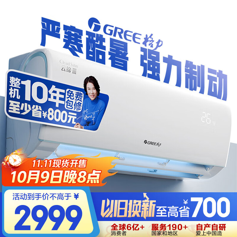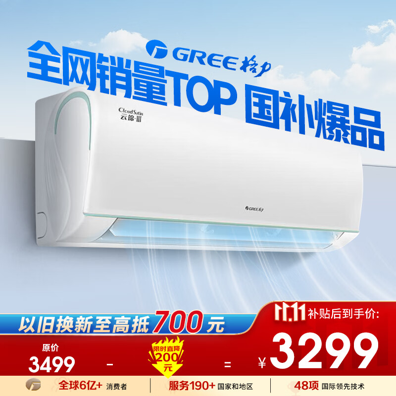 1、格力 云锦三代 1匹(京东参考价:2999)