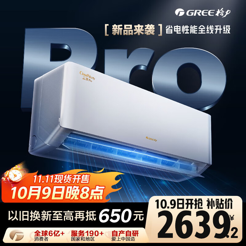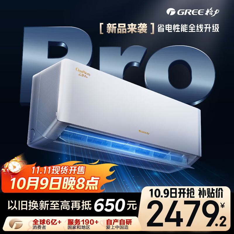 格力空调 大1匹云佳pro新一级能效 变频壁挂式卧室挂机 新品升级 省电空调KFR-26GW/NhMa1BG 国家补贴