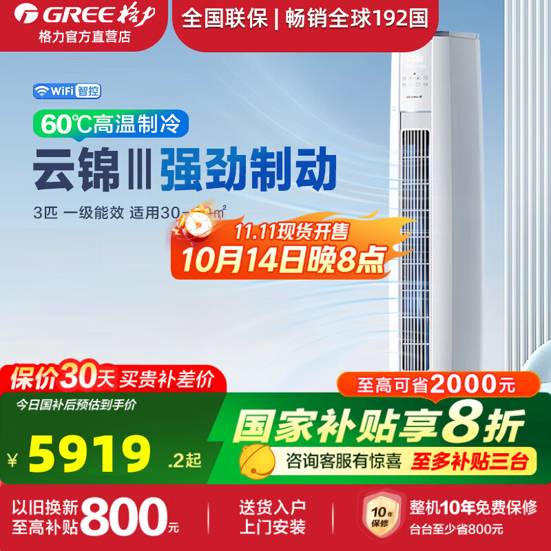 格力(GREE)空调【国家政府补贴20%】云锦三代柜机新一级 变频冷暖客厅用圆柱柜式 高温自清洁 智