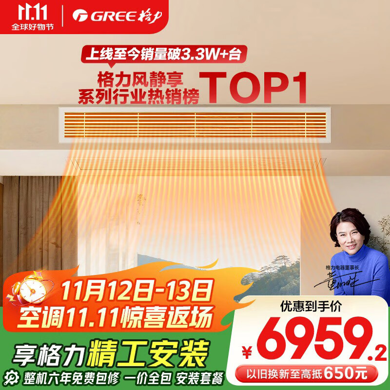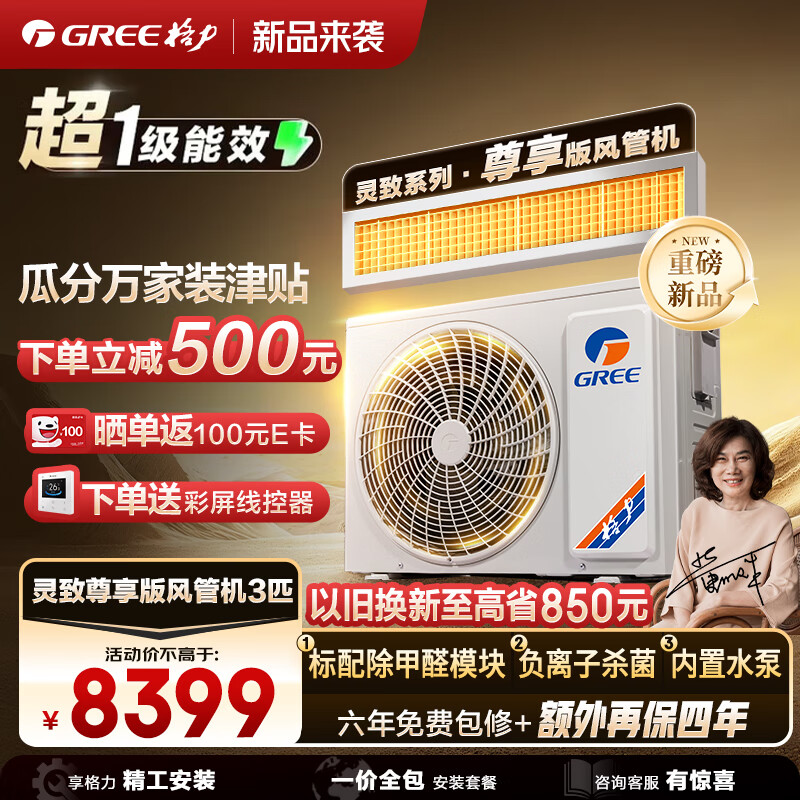 【京东自营】格力中央空调风管机一拖一灵致尊享3匹家用除甲醛1级能效FQR7.2Pd/EcNh-N1