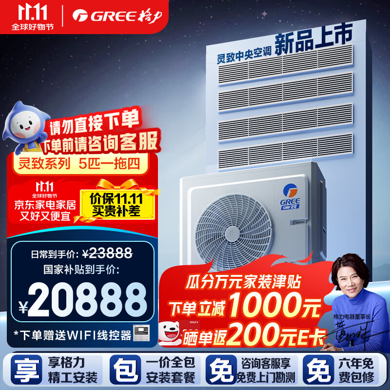 【京东自营】格力中央空调一拖四星悦多联机5匹灵致120GMV-EH5WL/A多效静音一价全包套餐格力