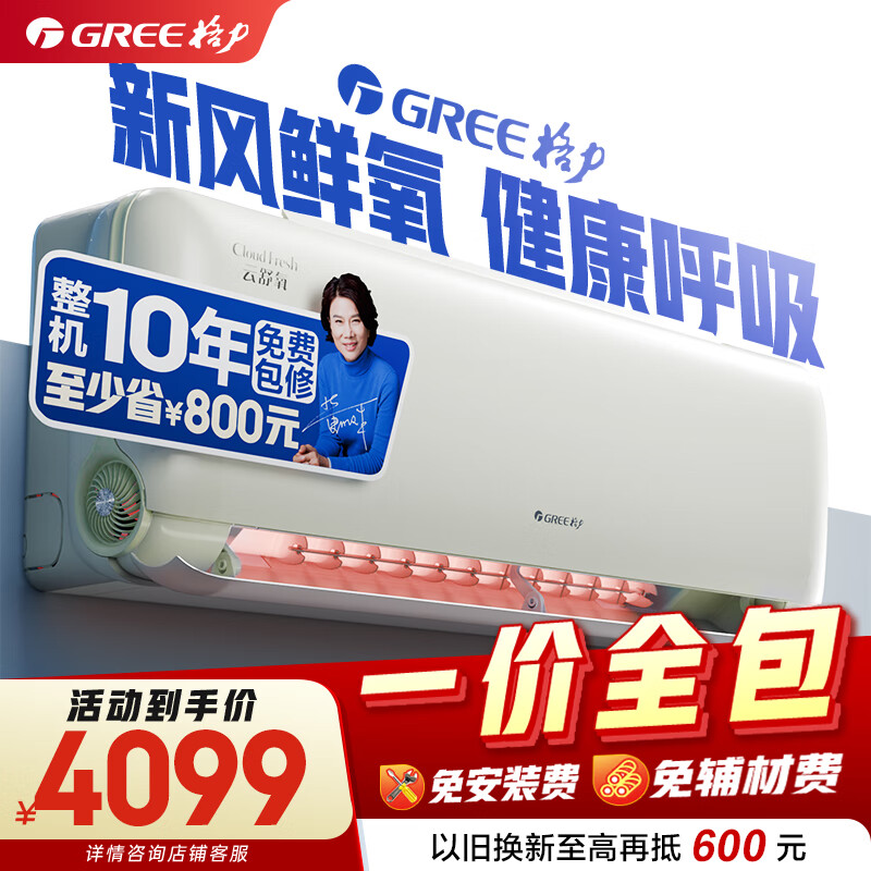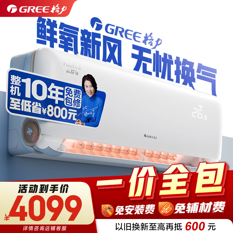 格力【一价全包】新风空调 大1匹 云舒氧 1级能效 壁挂式卧室挂机 格力空调KFR-26GW/NhHf1BAj