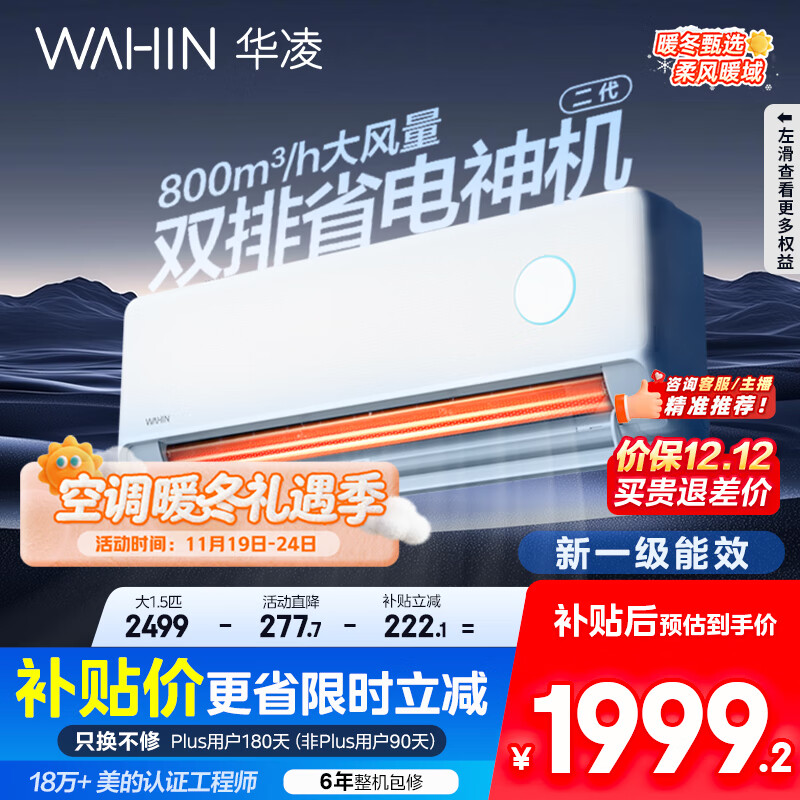 华凌空调 大1.5匹【大风口】双排神机二代舒适风变频冷暖挂机 超一级能效KFR-35GW/N8HE1Ⅱ国家补贴