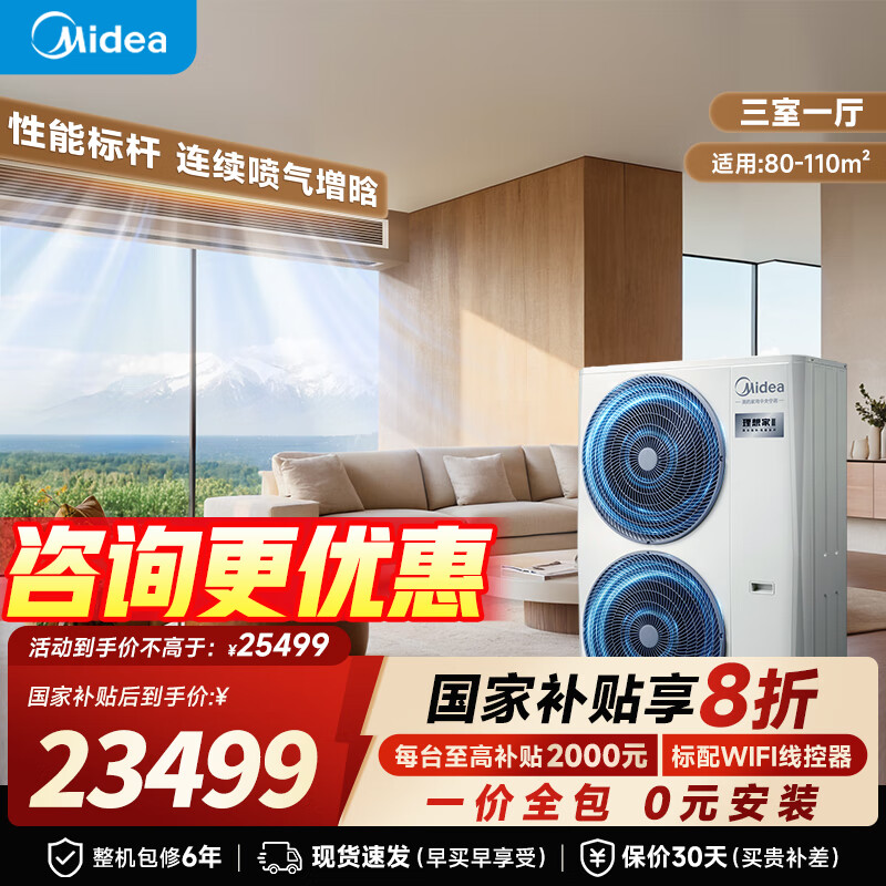美的理想家三代一拖四【国家补贴直降20%】全屋智慧空气管家一拖多全直流变频多联机 中央空调 5匹 一级能效 一拖四包安装80-110㎡