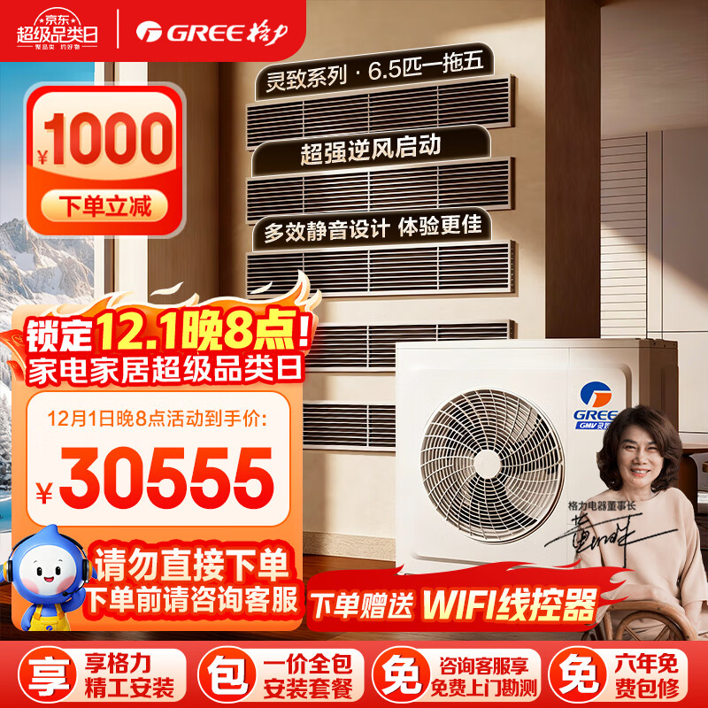 格力(GREE)中央空调一拖五多联机大6匹灵致160 GMV-EH6.5WL/A 多效静音 一价全包套餐 精工安装 国家补贴