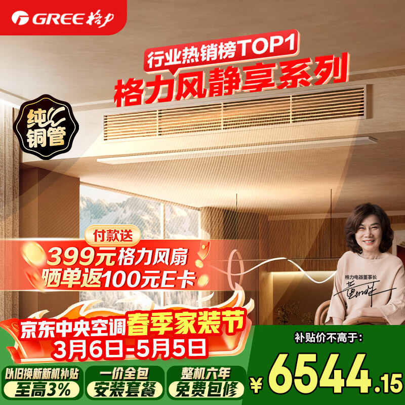 【京东自营】格力中央空调灵致多联机大6匹纯铜管GMV-EH6.5WL/A四室一厅多效静音一价全包精工