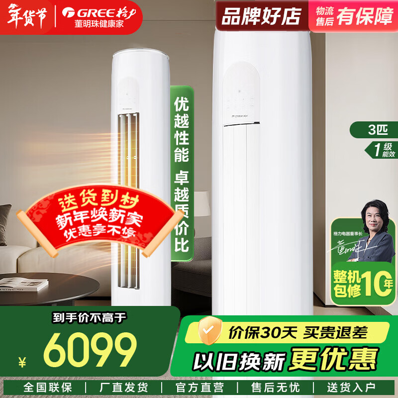 格力(GREE)空调3匹 王者(同京致)新一级能效变频冷暖 纯铜管上下出风不直吹 恒温立体送风 客厅空调立式柜机 王者 3匹 【上下出风不吹人】