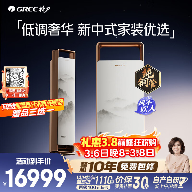 格力空调 国风 3匹新一级纯铜管 健康风不吹人柜机 国家补贴KFR-72LW/(72507)FNhAa-B1(WIFI)(胡桃咖)