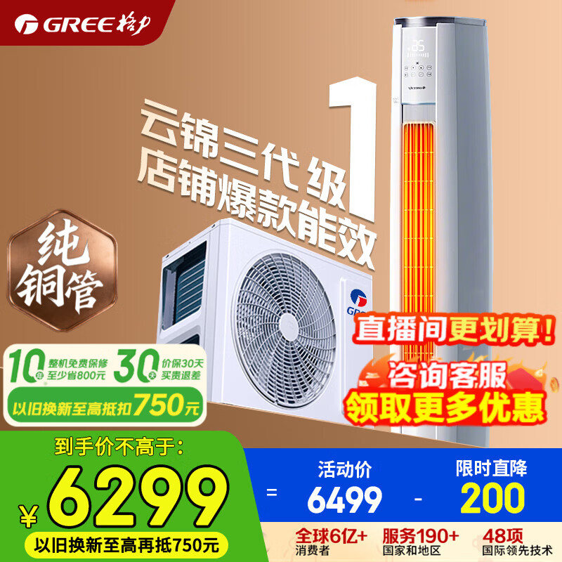格力空调 云锦三代 3匹 新一级能效 变频冷暖 纯铜管 客厅立式空调柜机 京东官方正品 家电国家补贴 云锦III 2匹 旗舰款 纯铜管【冷酷外机】