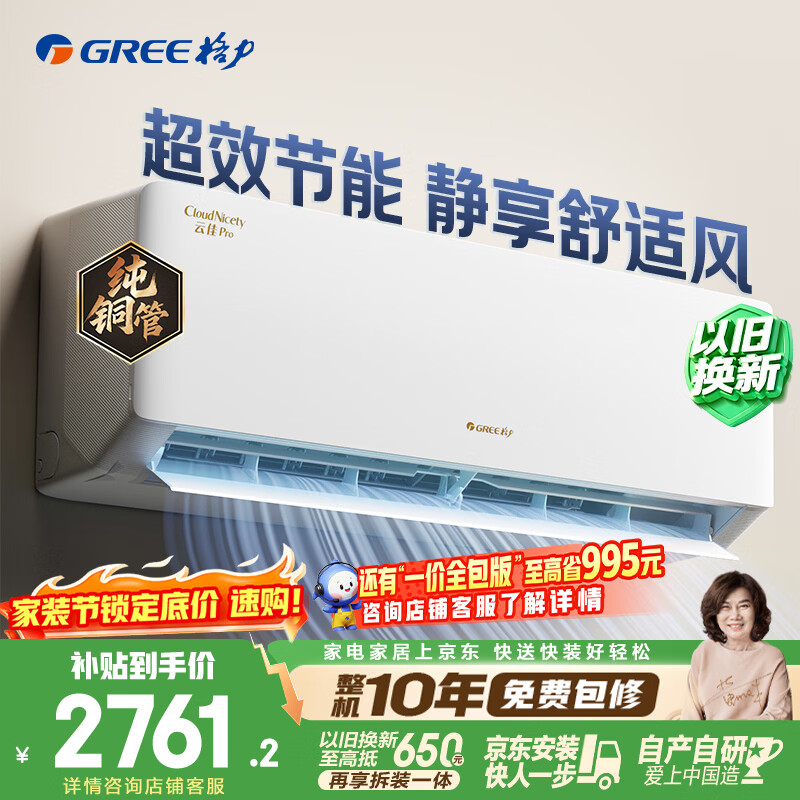 【京东自营】格力空调云佳pro1.5匹新一级能效变频纯铜管卧室挂机新品升级省电空调国家补贴KFR-3