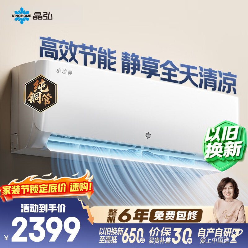 【京东自营】格力出品晶弘空调小凉神大1匹新一级能效变频纯铜管卧室省电挂机国家补贴KFR-26GW/J