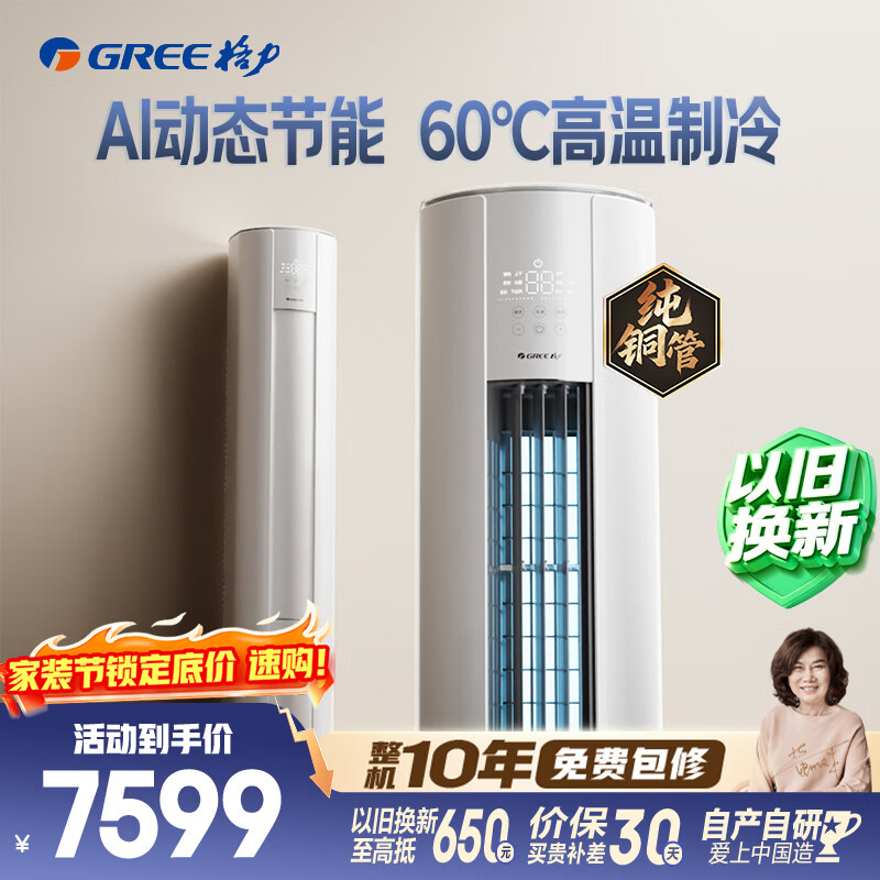 【京东自营】格力空调云佳Pro3匹新一级能效变频AI省电冷酷外机纯铜管客厅空调柜机国家补贴KFR-7