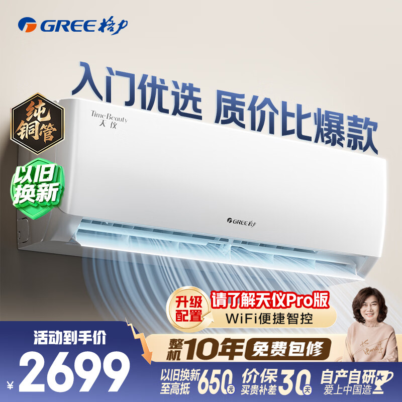 天仪系列空调专为卧室设计,大1匹的功率足以满足10-15平方米的卧室需求。新一级能效变频技术让它在节能表现上尤为出色,纯铜管的配置则保证了长久稳定的制冷效果。