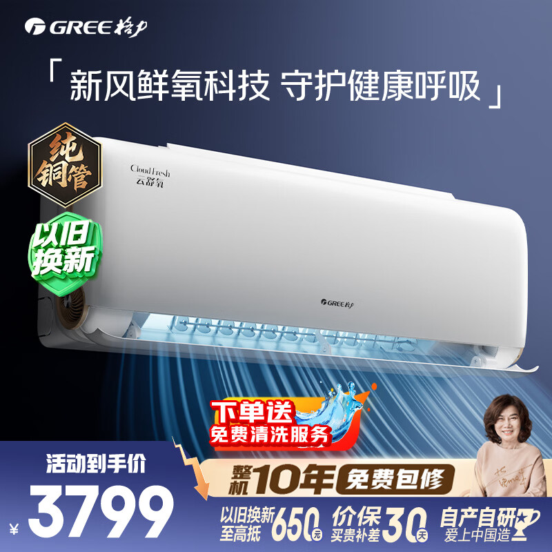 4. 格力空调 云舒氧 大1匹 新一级能效纯铜管 健康舒适风不吹人 卧室冷暖挂机 国家补贴KFR-26GW/NhHf1BAj