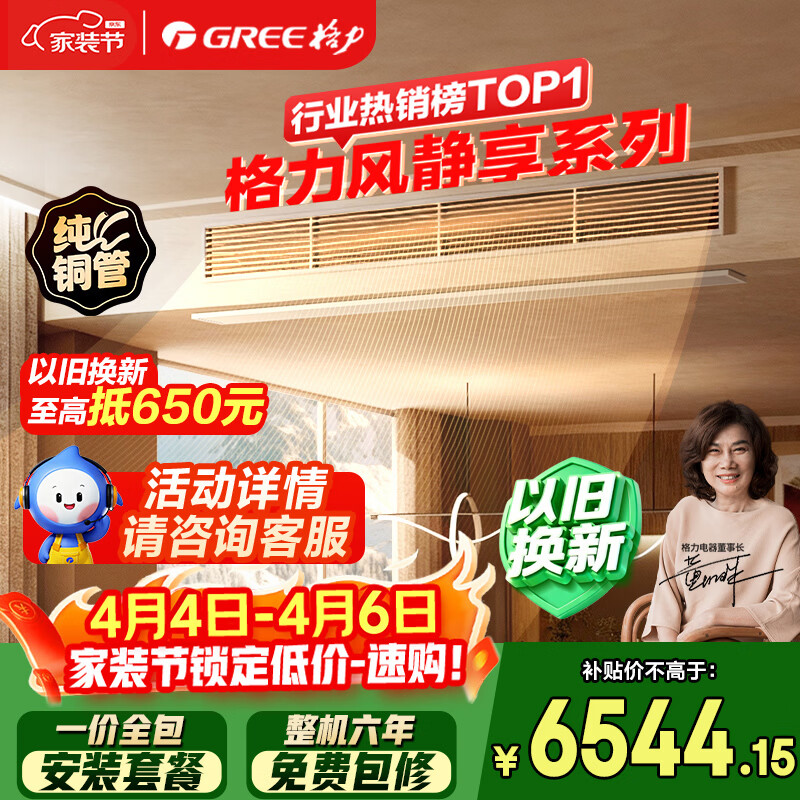 格力中央空调 风静享3匹风管机 一级能效 纯铜管FJR7.2Pd/Cb4Nh-N1 一价全包 精工安装